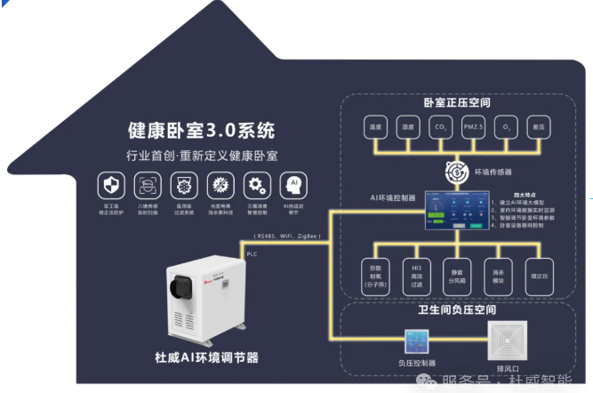 杜威智能全球首发健康卧室3.0系统,该系统的发布标志杜威由工业、医疗传统市场正式进入民用领域智能家居新赛道,杜威环境传感器、室内压力控制技术及AI软件算法三大核心技术共同打造“懂呼吸的房间”重新定义健康住宅新标准,开启智能家居从“智能化”向“健康化”跨越的新纪元。